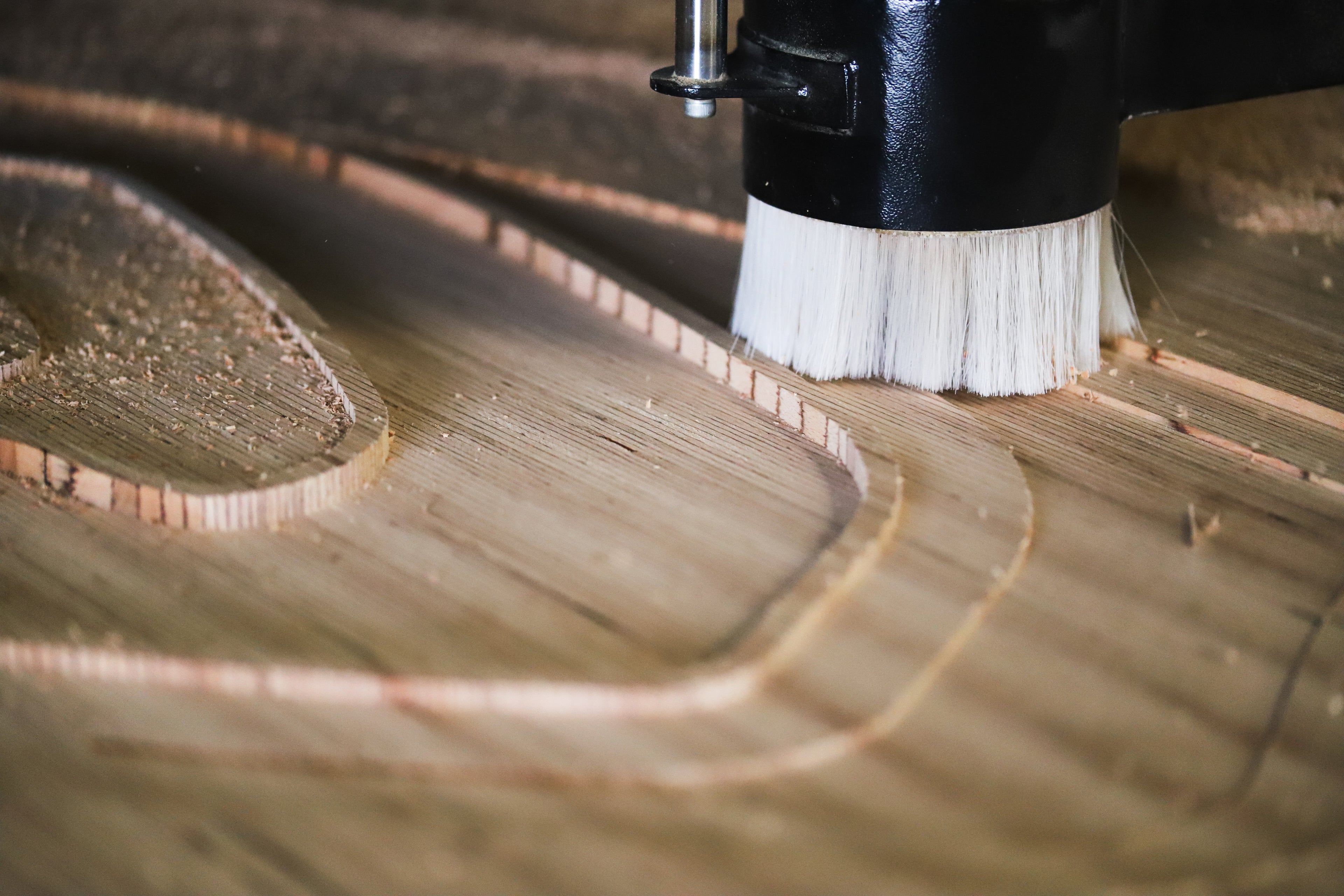 L'étape découpe du bois est assistée par notre fraiseuse numérique. L'assemblage et les finitions sont assurés par notre équipe.
